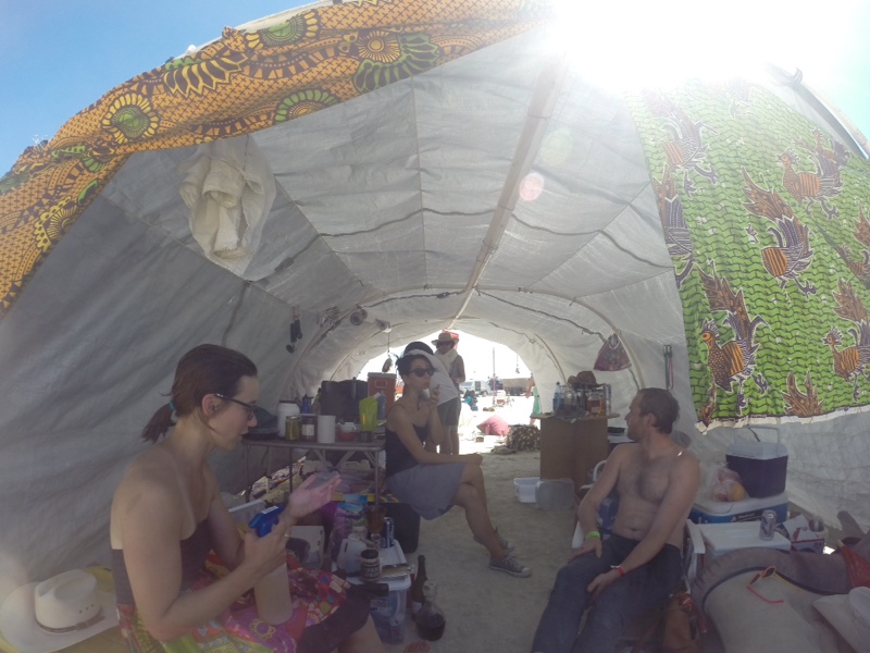 Other highlights include the burning of large structures like Embrace and the Temple. Also hanging out around our camp talking to and painting people, being able to sleep in late in the coolness of our hexayurt, and offering our homemade infused gin&tonics on the corner to the general public. Yummm.