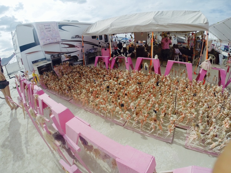 There are some things that become normal to you, like nudity, peeing in bottles, showering with baby wipes, long conversations with people you encounter, a sky full of stars, hydrating with beer, giant mind-blowing structures, comedic relics like the stuffed tiger shrine in front of our camp, and the sparkle pony skeletons we saw holding signs asking for shade and water. Art. Hugs. Nonsense. All become normal. Check out Barbie Death Camp: