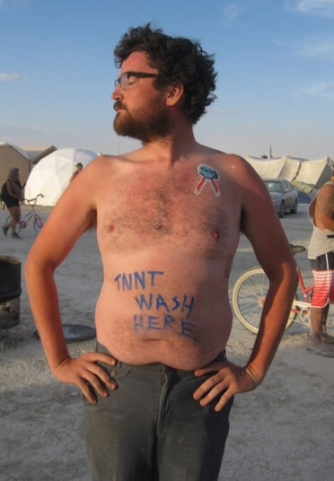 A major highlight for us was born of our incessant desire to stop passers-by in any way we could. One of our camp members was out with a pressurized water mist sprayer offering to spray people to cool them down. This offer quickly evolved into “Free Taint Washes” which we promptly wrote on his belly, so that the offer was clear. After getting a few volunteers we realized this idea had momentum, and before we knew it we were chanting “25! 26! 27 taints washed!” as our numbers grew. He made it to 50 that day: the last volunteer was a not-so-shy girl named Thunder Pussy. It was the pinnacle of taint-washing in the history of the universe.