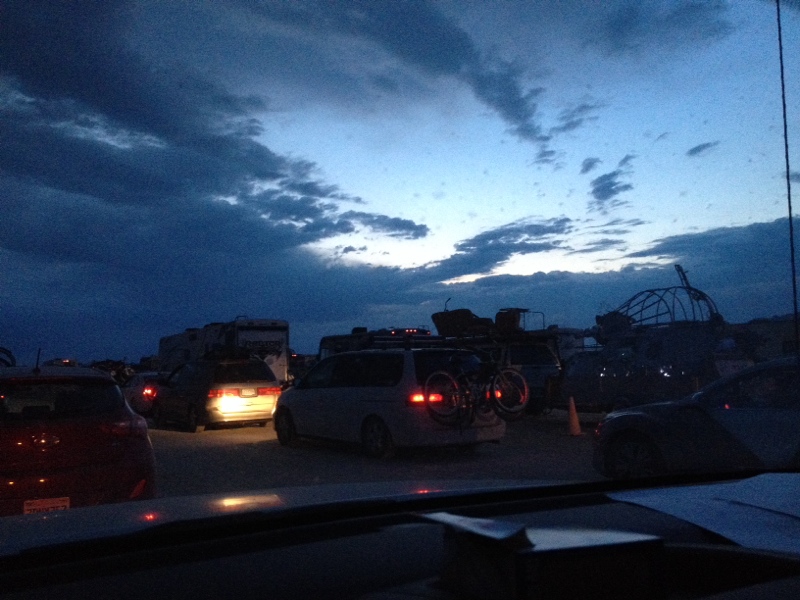 It’s nearing midnight after our “first day at burning man” and the line finally starts moving. FREEDOM.