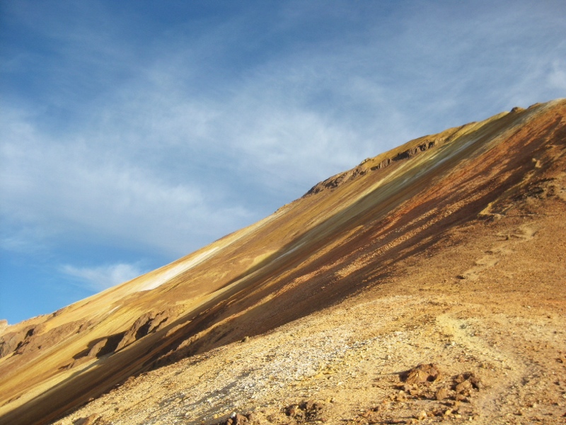 We are about halfway up when the sun rises, casting an orange glow on the already colorful volcano.