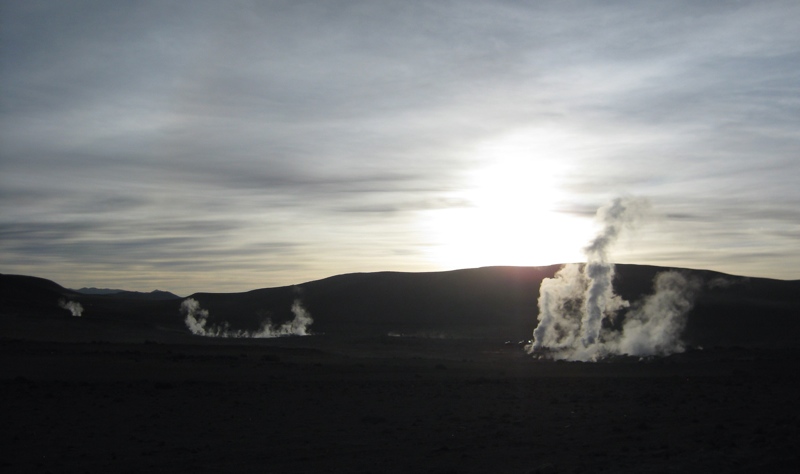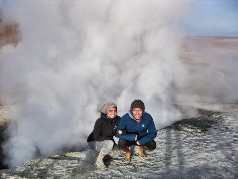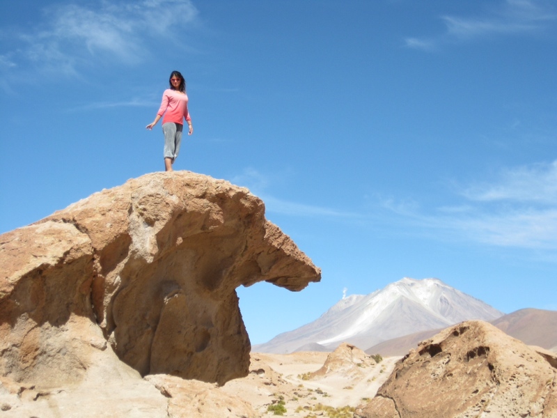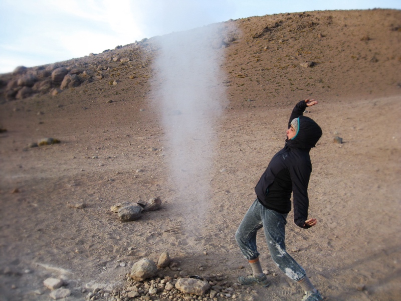 Following this we leave the salt flats to explore the surrounding area. Next stop is the Valle de las Piedras. With a smoking volcano in the background.