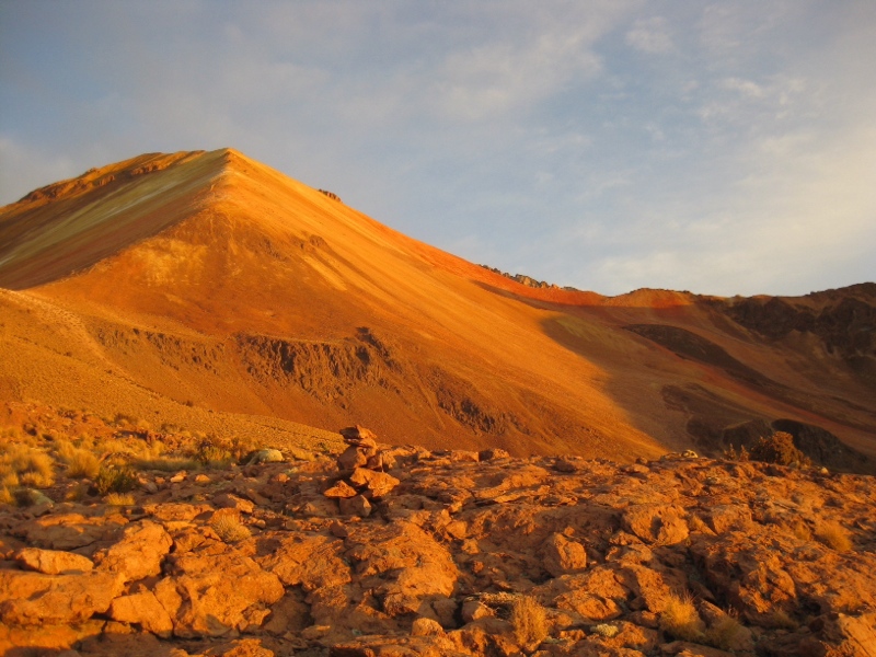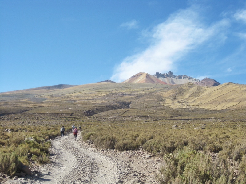 We are hiking fast. The last section is a giant mound of loose rocks and a trail that slithers up its steep incline. We’re now over 4500m, so we’re taking five steps and stopping to catch our breath, over and over.