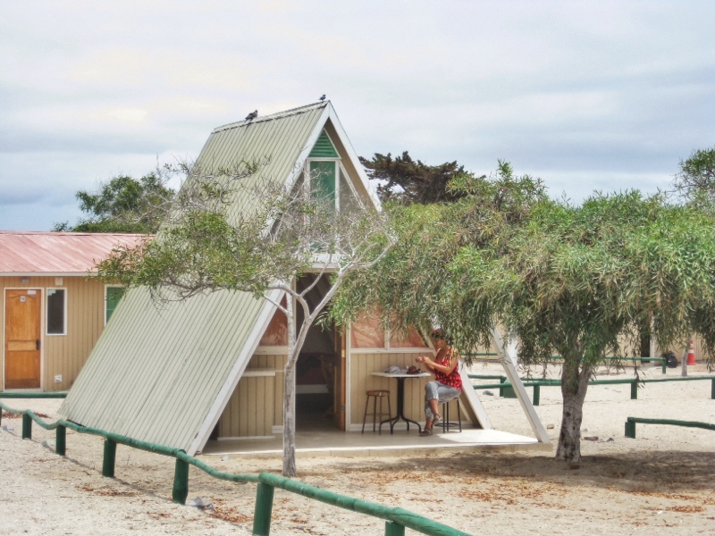 On s’installe dans une petite cabane triangulaire et nous retournons à la plage puisque le soleil a finalement vaincu et qu’il nous faut même sortir la crème solaire! Austin décide de se baigner mais ne reste pas longtemps dans l’eau qui est très froide. C’est sûr qu’après la Méditerranée…