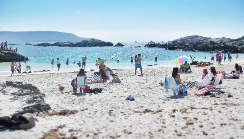 Nous nous rendons le lendemain à Bahia Inglesa, un petit village côtier à quelques heures au sud. Nous arrivons vers midi et et il y a encore et toujours du brouillard. Mais, le soleil semble faire un grand effort pour réapparaitre.