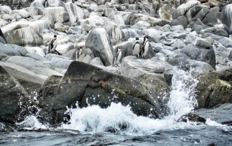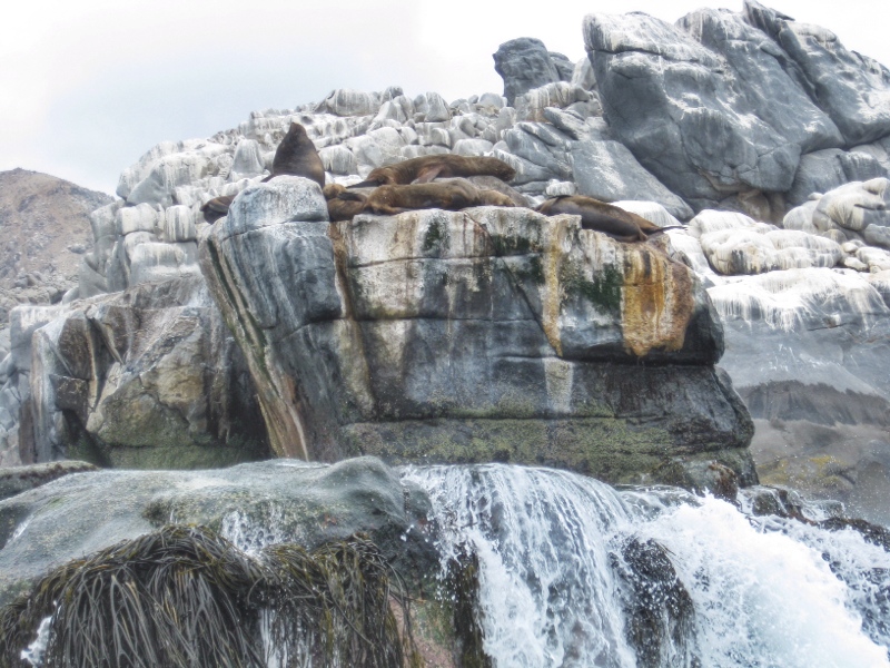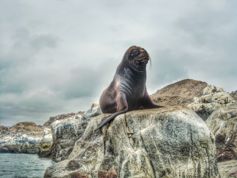 En plus des pingouins (qui sont vraiment trop chou), l’île abrite des otaries, des chauve-souris vampires, des loutres, des pélicans, etc… On s’approche assez près de l’île pour pouvoir observer tous ces animaux et même un groupe de dauphins au loin. Une des otaries semble particulièrement apprécier l’intérêt qu’on lui porte et nous offre plusieurs poses mémorables.