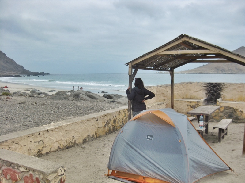 Nous passons le reste de la journée à nous ballader entre les rochers pour rejoindre des plages cachées. On fait attention de ne pas marcher sur les nombreux crabes, oursins et étoiles de mer croisés sur notre chemin. Nous rentrons à notre tente, où nous dégustons pour dîner les excellentes empanadas aux crevettes que la dame qui tient le camping nous prépare. Nous voilà prêts pour une nouvelle nuit bercés par les vagues.