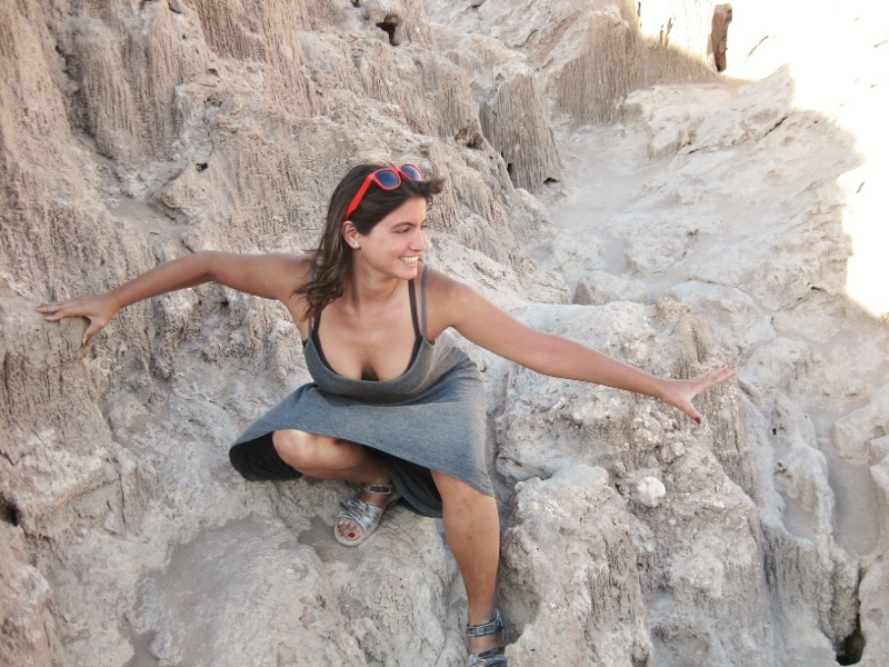 Notre guide nous conduit ensuite au fameux Valle de la Luna, une zone désolée qui consiste de formations rocheuses orangées. On se ballade un peu pour explorer les grottes de la vallée formées en partie de sel.