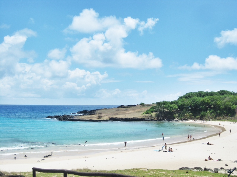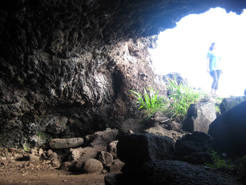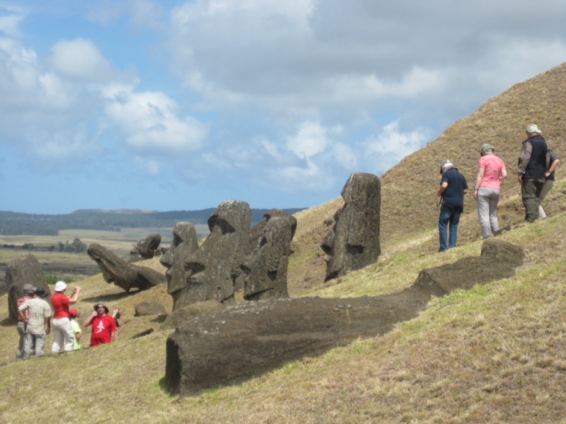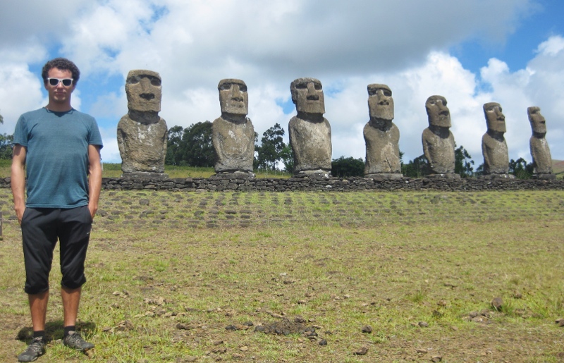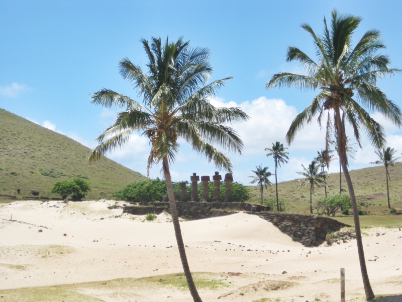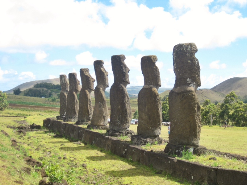 Chaque jour nous goutons à un nouveau poisson local et profitons de l’air et du soleil sub-tropical. On visite l’énorme cratère d’un volcan, plusieurs caves et bien sûr, des mo’ai à n’en plus finir.